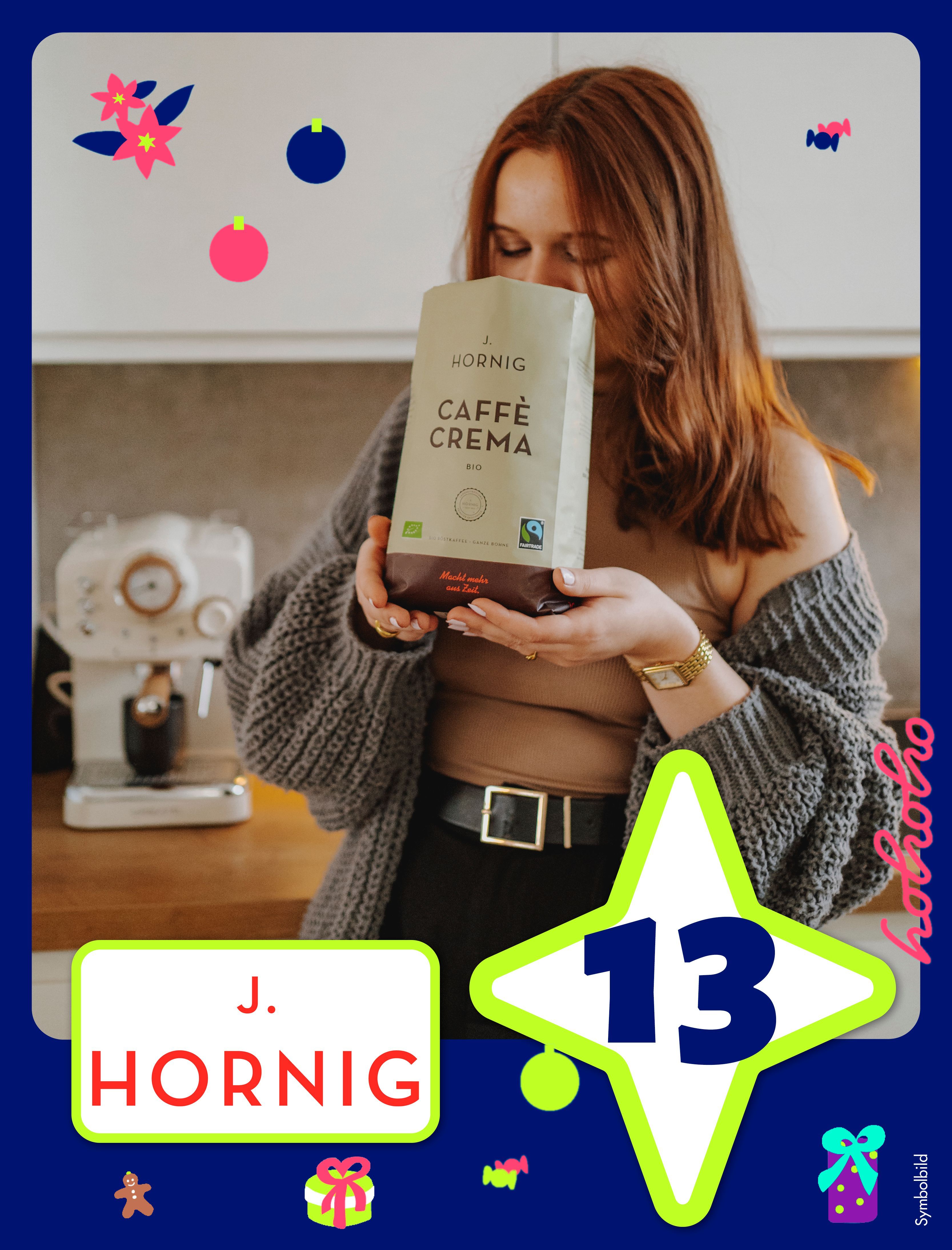 Hinter diesem Türchen wartet echter Kaffeegenuss, und das Monat für Monat, ein ganzes Jahr lang: Der Kaffee von J. Hornig ist fair, nachhaltig und mit viel Liebe zum Detail geröstet. Die Bohnen stammen aus fairem Handel, werden in der schonenden Langzeitröstung veredelt und entfalten dadurch ihr volles Aroma. Das Ergebnis: ein Kaffee, der nicht nur schmeckt, sondern auch Gutes bewirkt. Genuss mit Verantwortung – typisch J. Hornig.