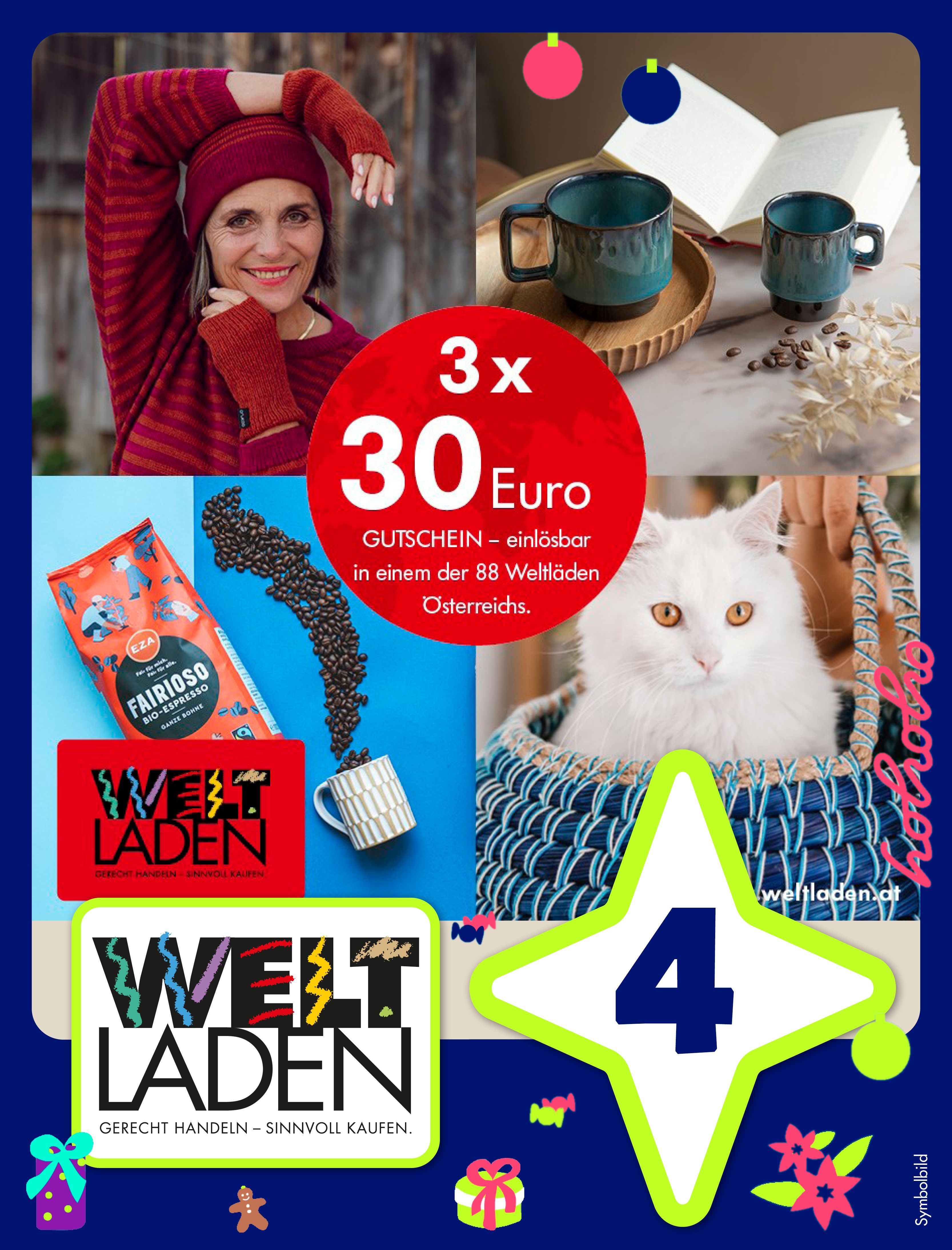Geschenke aus fairem Handel haben doppelten Sinn: Die Beschenkten erhalten besondere Produkte von höchster Qualität – und die Menschen, die sie herstellen, bekommen faire Löhne, menschenwürdige Arbeitsbedingungen und Respekt. Heute verlosen wir drei Weltladen-Gutscheine im Wert von je 30 Euro! Damit kannst du in einem der 88 Weltläden in Österreich einzigartige Produkte entdecken – von Handwerkskunst bis zu kulinarischen Köstlichkeiten, alles mit fairer Lieferkette.
